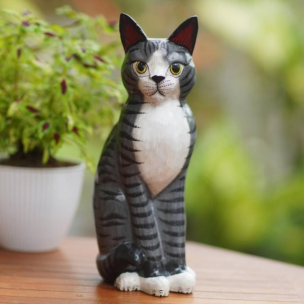 This statuette is beautifully carved and painted. It is a welcome addition to my cat collection.