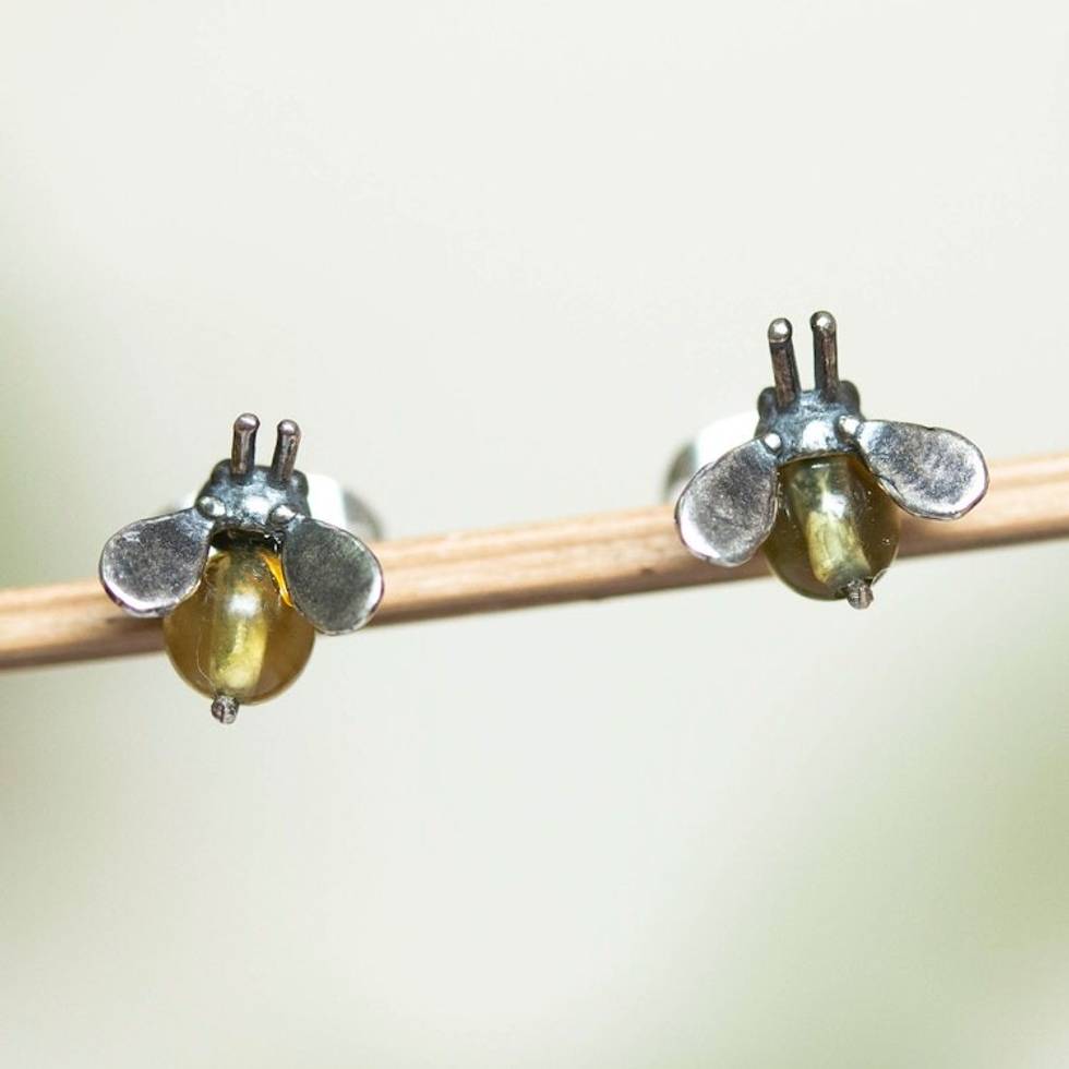 Artisan Crafted Amber Stud Earrings 'Bee Mine' Item ID: 2671639150