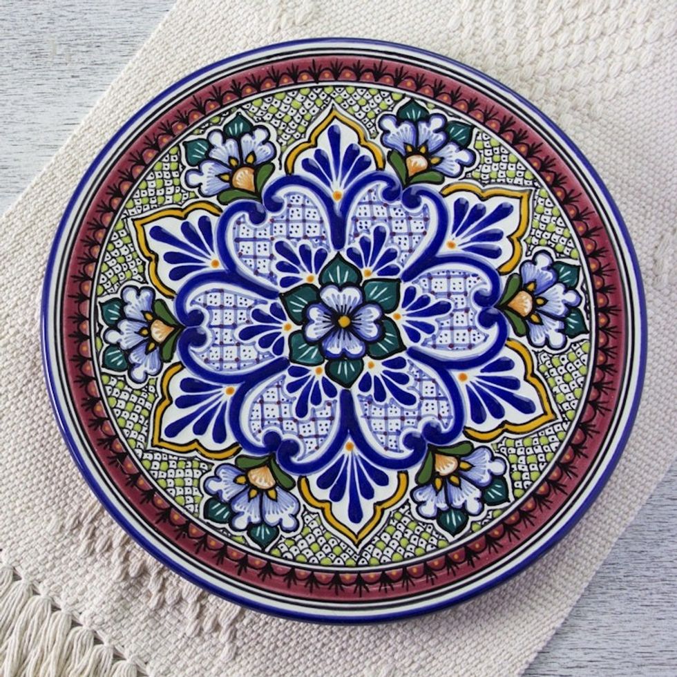 Artisan Crafted Authentic Mexican Talavera Style Plate 'Imperial Flower' Item ID: 2669897639