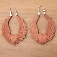 Artisan Crafted Balinese Wood and Silver Hoop Earrings 'Angel Heart' Item ID: 2670222153