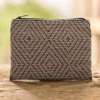 "Beaded by hand by the Artisans of Panabaj, this smart little coin purse will add subtle sparkle to your day. Petite glass beads in mushroom and black cover the small polyester fabric bag that closes with a zipper."