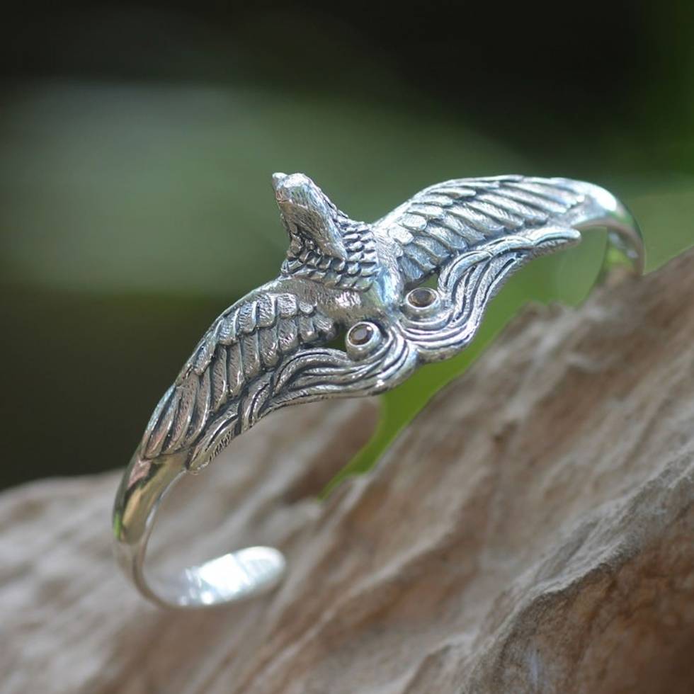 Artisan Crafted Bird Theme Citrine and Silver Cuff Bracelet 'Bird of Paradise' Item ID: 2669920814