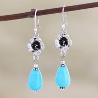 Artisan Crafted Blue Agate Dangle Earrings from India 'Blue Parasol' Item ID: 2671790049