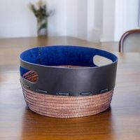 Artisan Crafted Blue Leather and Pine Decorative Basket 'Vibrant' Item ID: 2671778562