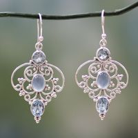 Artisan Crafted Blue Topaz Dangle Earrings with Chalcedony 'Blue Arabesque' Item ID: 2669924844