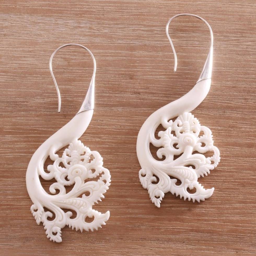 Artisan Crafted Bone Drop Earrings from Bali 'Pura Plains' Item ID: 2669921915