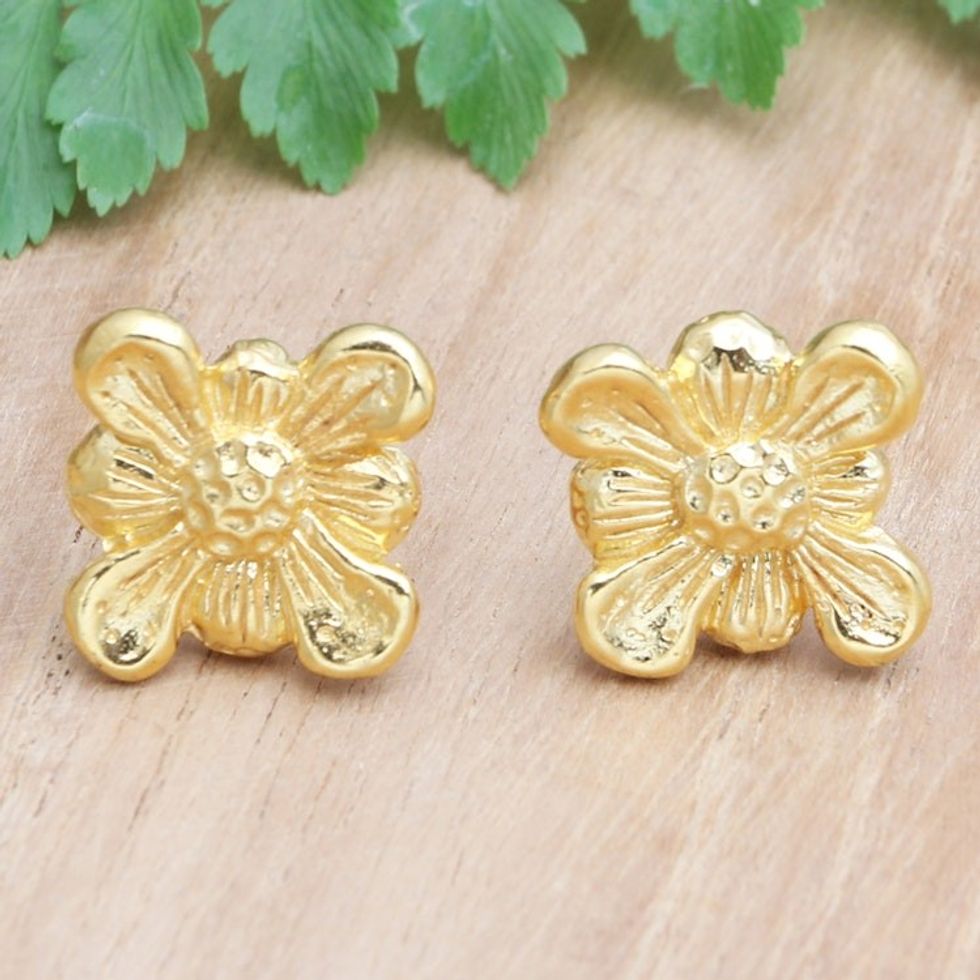 Artisan Crafted Button Earrings in 22k Gold Plate from Bali 'Idyllic Blooms' Item ID: 2671748561