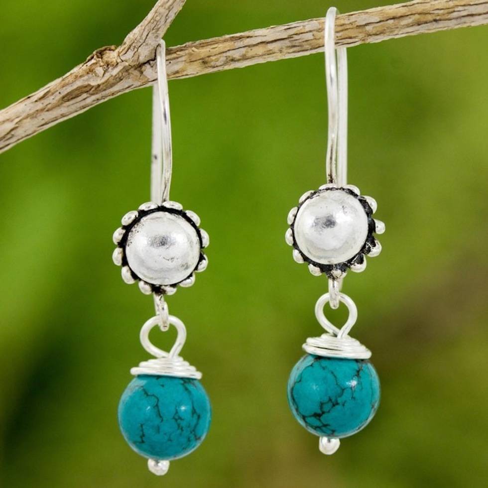 Artisan Crafted Calcite and Sterling Silver Dangle Earrings 'Solar Blue' Item ID: 2671802162