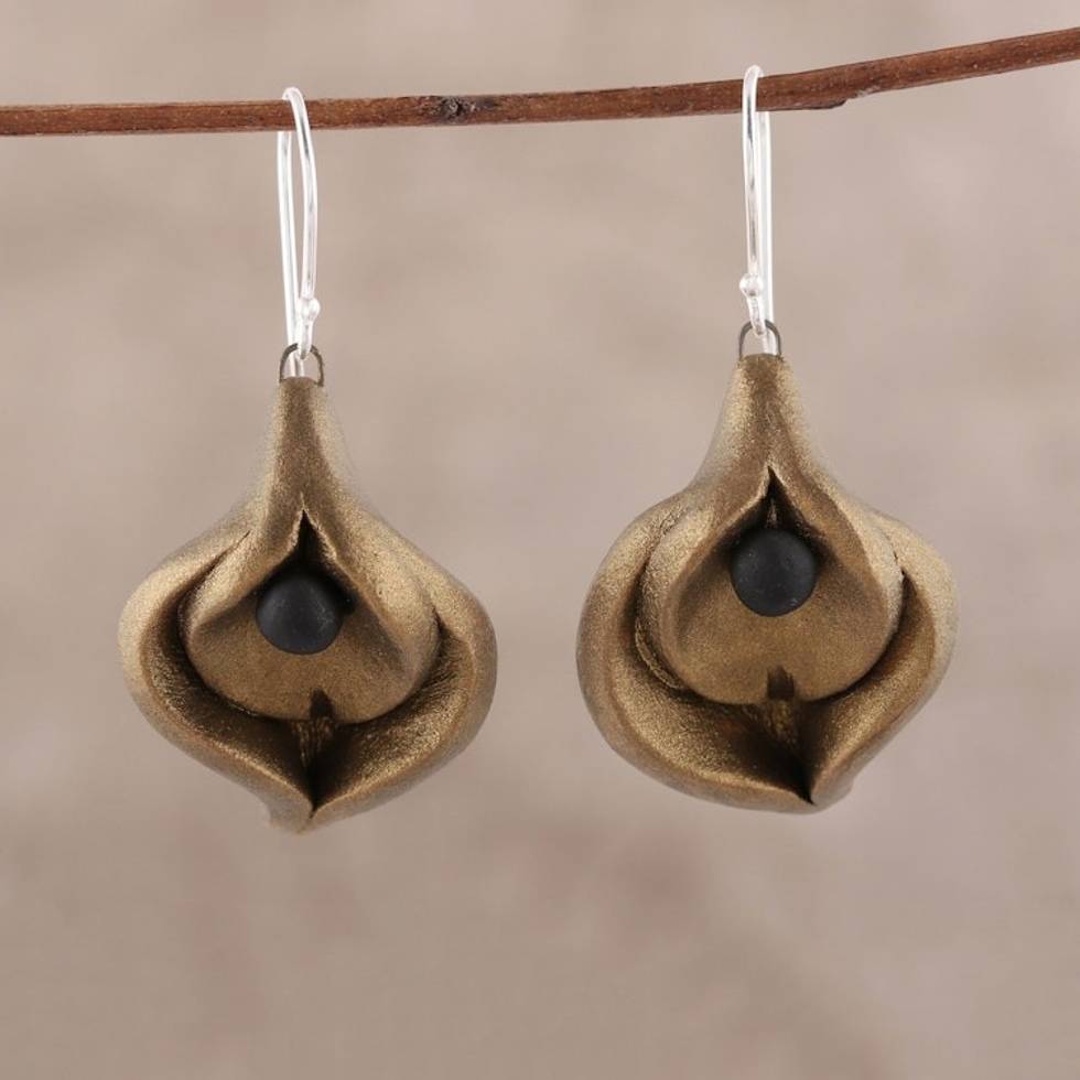 Artisan Crafted Ceramic Dangle Earrings with Petal Motifs 'Charming Petals' Item ID: 2671792786