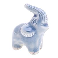 Artisan Crafted Ceramic Figurine 'Happy Elephant in Blue' Item ID: 2669926651