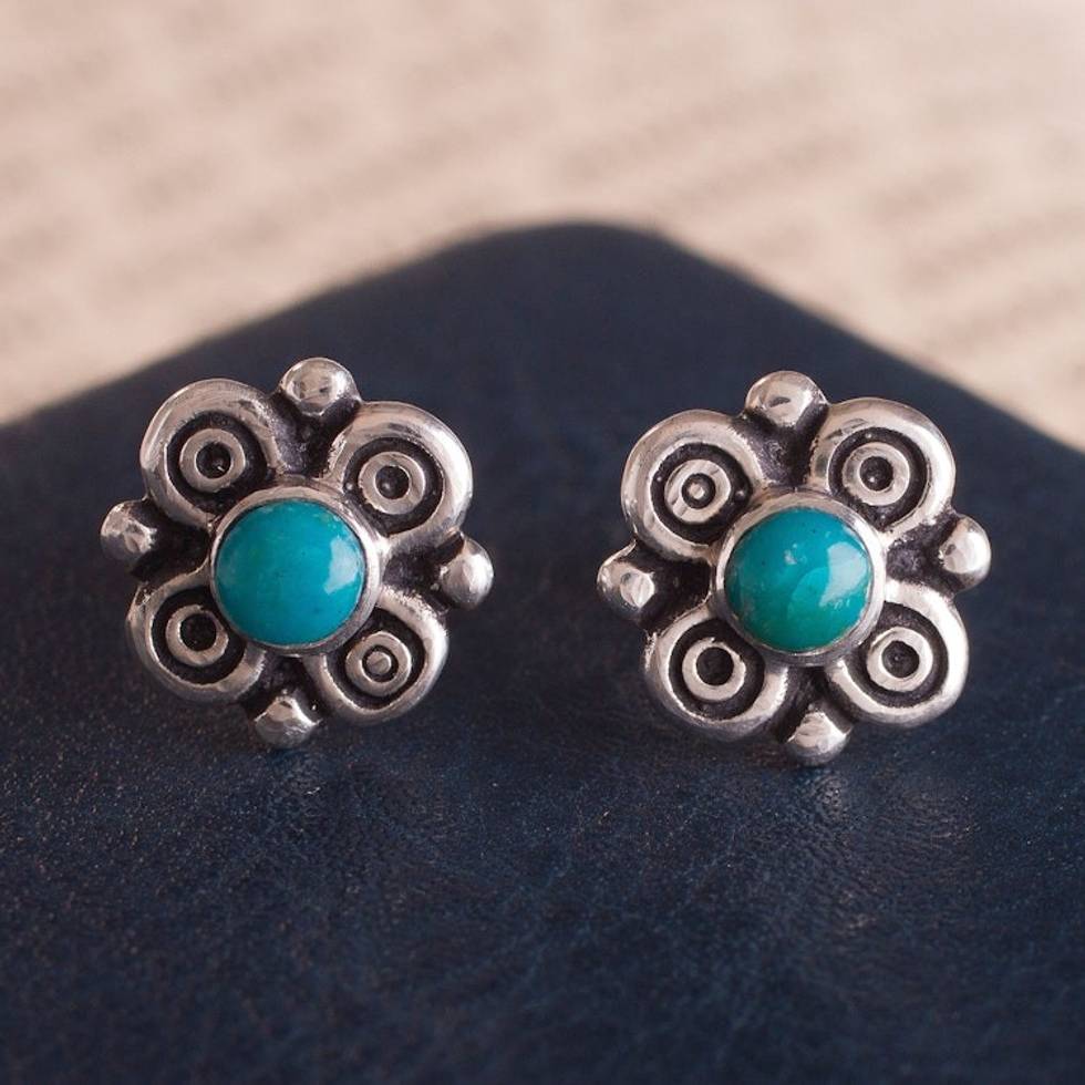 Artisan Crafted Chrysocolla Stud Earrings from Peru 'Divine Sweetness' Item ID: 2671689579