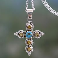Artisan Crafted Citrine and Silver Cross Pendant Necklace 'Divine Harmony' Item ID: 2671793154