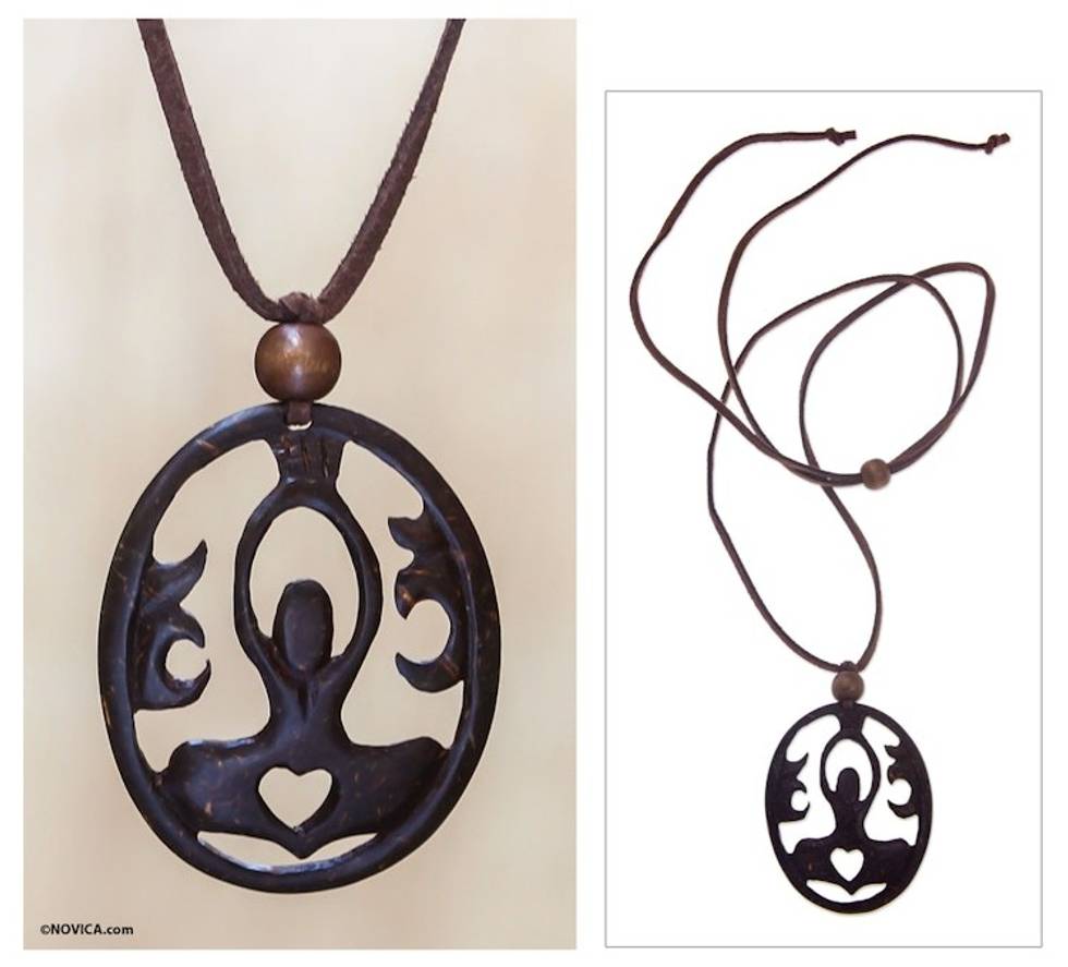 Artisan Crafted Coconut Shell Pendant Necklace 'Sukhasana Yoga' Item ID: 2671699283