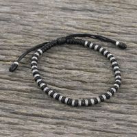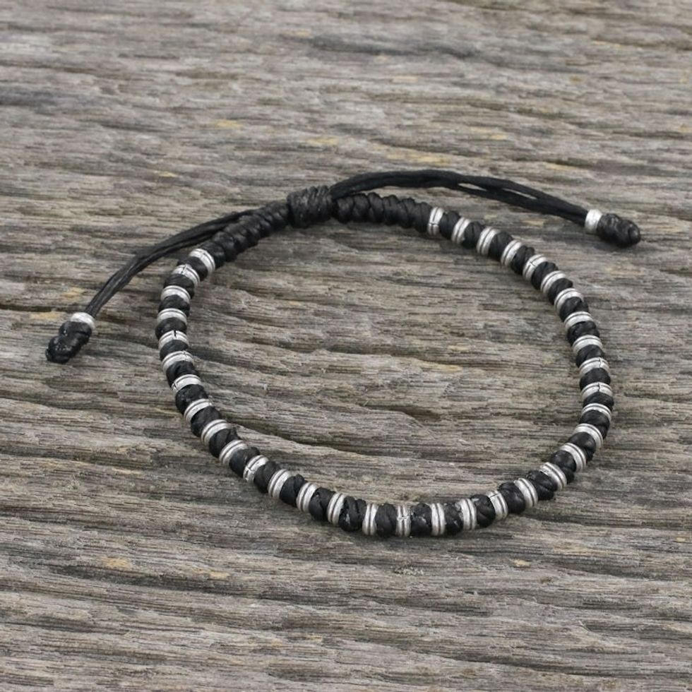 Artisan Crafted Cord Bracelet with 950 Silver Beads 'Endeavor in Black' Item ID: 2669925917