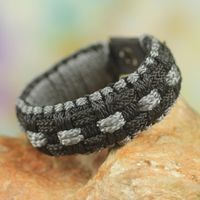 Artisan Crafted Cord Wristband Bracelet in Black and Grey 'Mankessim in Shadows' Item ID: 2671800780