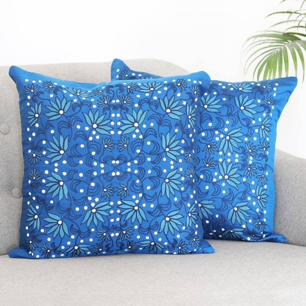 Artisan Crafted Cotton Cushion Covers Pair 'Night Trellis' Item ID: 2671789118