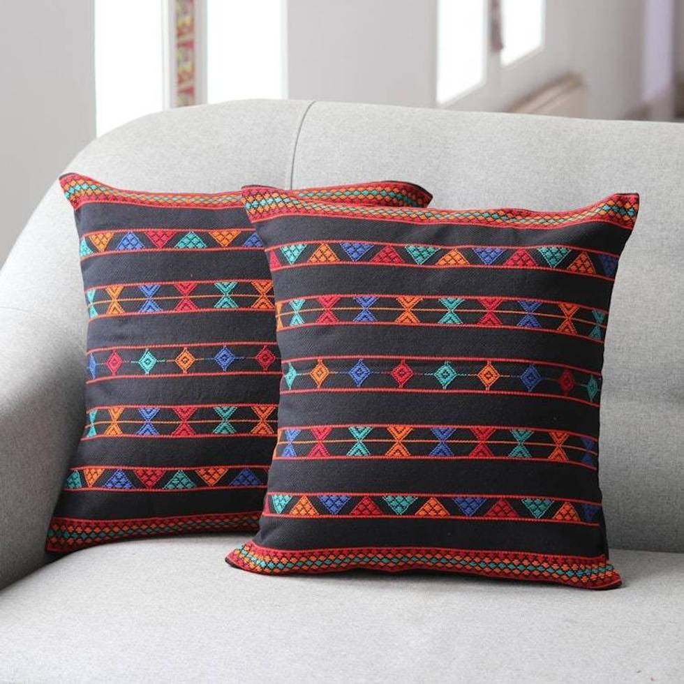 Artisan Crafted Cotton Patterned Cushion Covers Pair 'Summer Jazz' Item ID: 2676663852