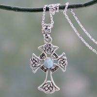 Artisan Crafted Cross Pendant Necklace with Larimar 'Sacred Realm' Item ID: 2671793887
