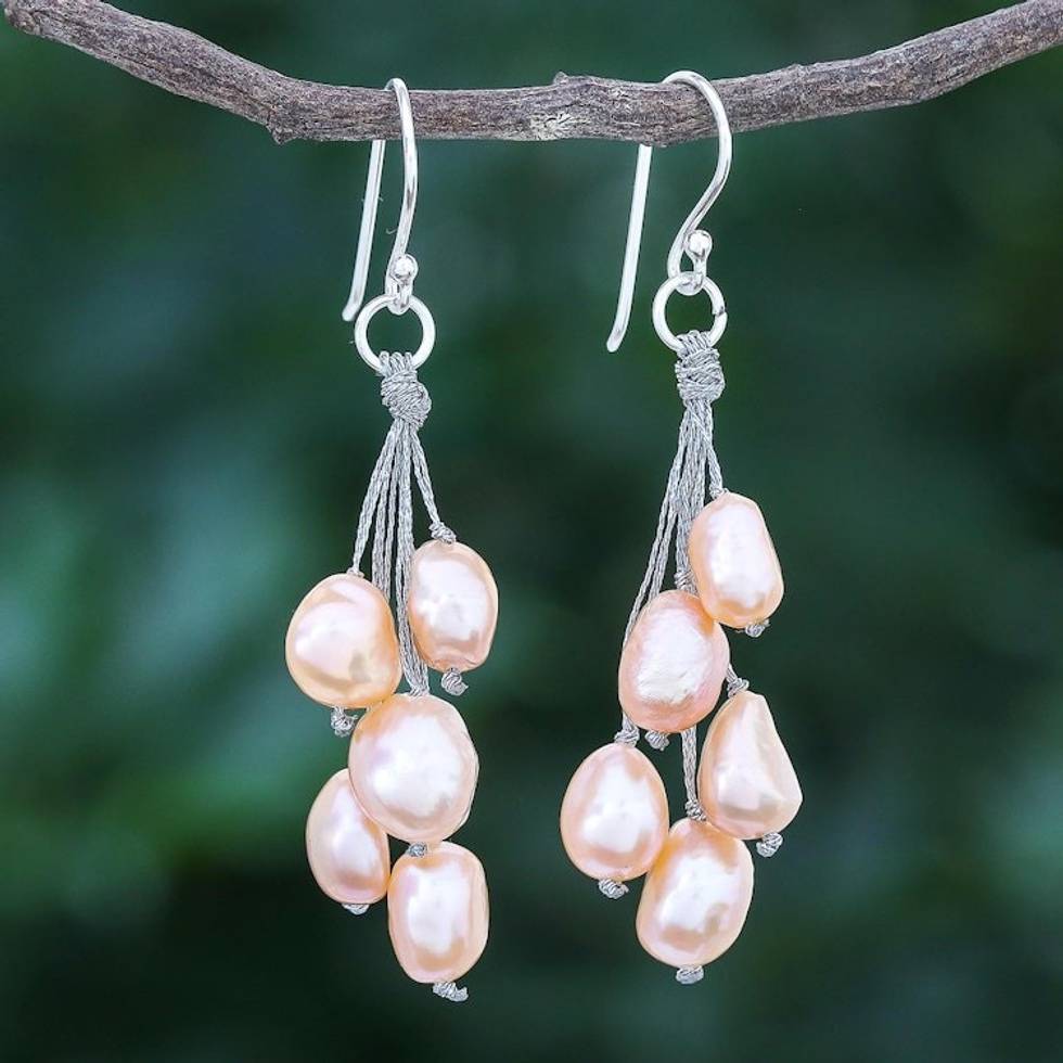 Artisan Crafted Cultured Freshwater Pearl Dangle Earrings 'Mystic Pearl in Peach' Item ID: 2671640826