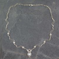 This necklace is beautiful and has a lovely design - a mixture of cultured pearls and garnets. You will not regret this purchase.