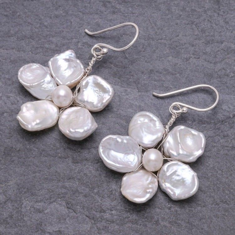 Artisan Crafted Cultured Pearl Earrings 'Fair Flower' Item ID: 2671797666