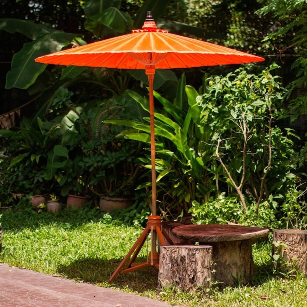Artisan Crafted Decorative Orange Cotton Garden Umbrella 'Happy Garden in Orange' Item ID: 2671802240