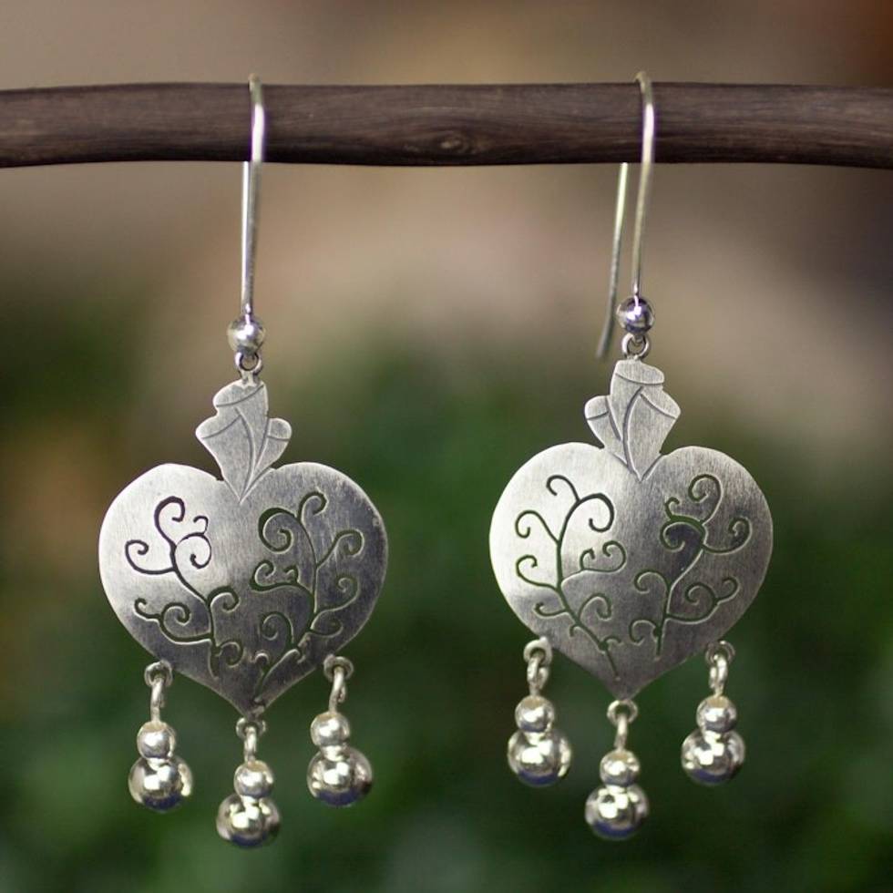 Artisan Crafted Earrings Taxco Sterling Silver Jewelry 'Depth of Heart' Item ID: 2671808975