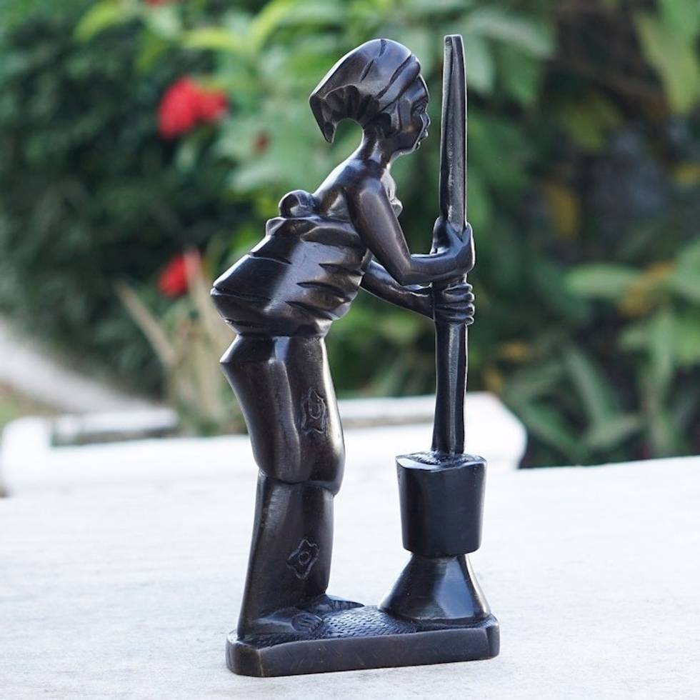 Artisan Crafted Ebony Wood Sculpture 'Hardworking Mother I' Item ID: 2671806226