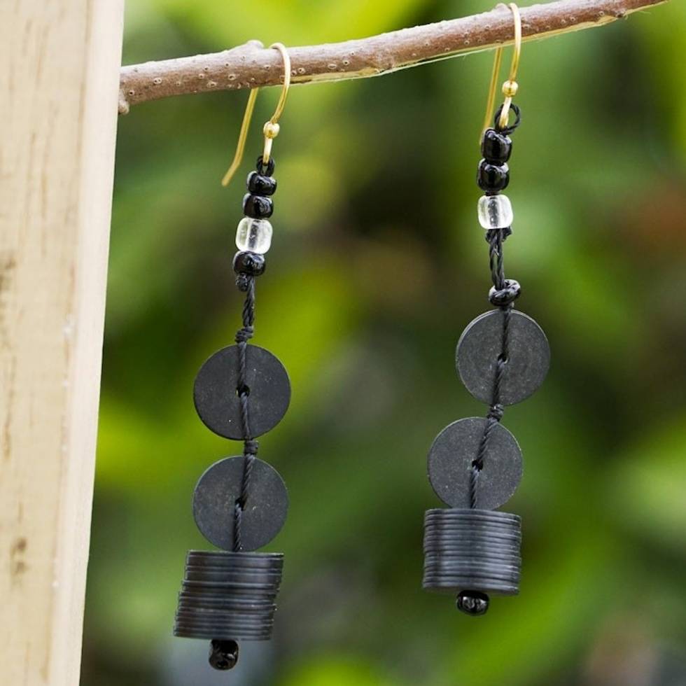 Artisan Crafted Eco-Friendly Beaded Dangle Earrings 'Dark of the Night' Item ID: 2671804099