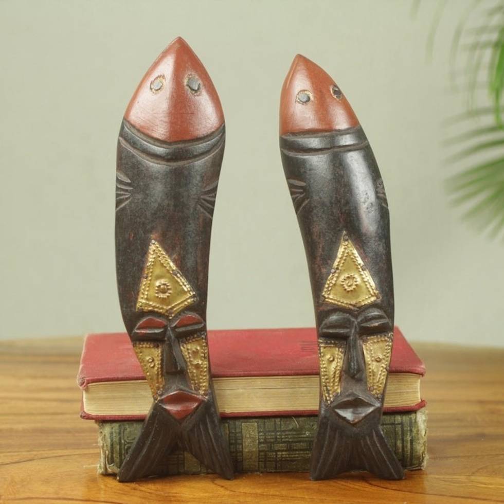 Artisan Crafted Fish Theme African Masks Pair 'Brother Fish' Item ID: 2671806937