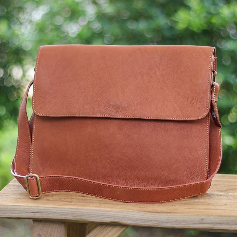 Artisan Crafted Flap Messenger Bag Made in Tan Brown Leather 'Smooth Tan' Item ID: 2671797383