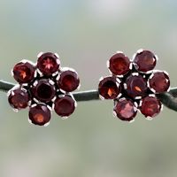 Artisan Crafted Floral Button Earrings with Garnet 'Romantic Blossom' Item ID: 2669925534