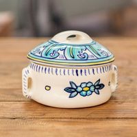 Artisan Crafted Floral Ceramic Soup Bowl with Lid 'Bermuda' Item ID: 2671777388