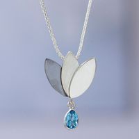 Artisan Crafted Floral Fine Silver Blue Topaz Necklace 'Mixtec Tulip' Item ID: 2671808732