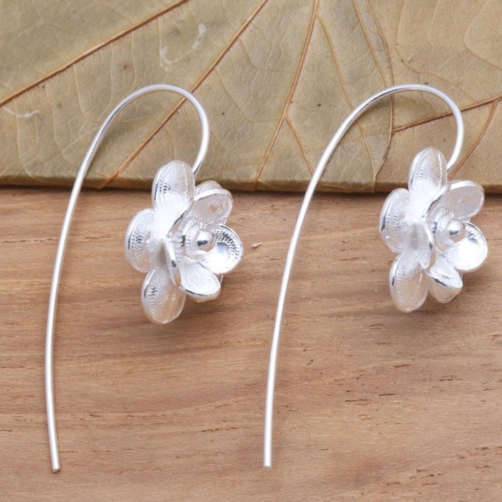 Artisan Crafted Flower Earrings in Sterling Silver 'Delicate Bloom' Item ID: 2671744796