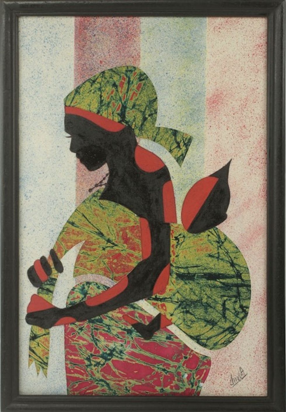Artisan Crafted Framed African Folk Art Motherhood Painting 'Good Akan Mother' Item ID: 2671803766
