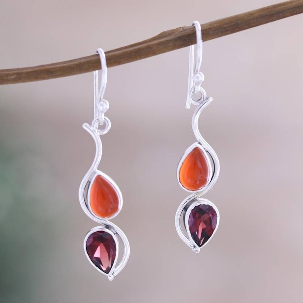 Artisan Crafted Garnet and Carnelian Dangle Earrings 'Hall of Fame in Red' Item ID: 2671787321