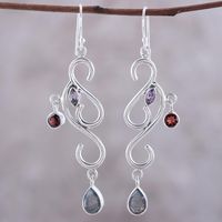 Artisan Crafted Garnet and Labradorite Earrings 'Modern Ivy' Item ID: 2671619899