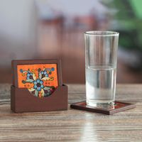 Artisan Crafted Glass and Wood Coasters Set of 4 'Morning Flowers' Item ID: 2671690599