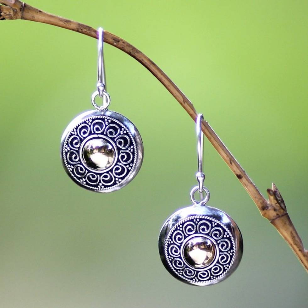 Artisan Crafted Gold Accent and Silver Earrings 'Golden Sunflowers' Item ID: 2671699088