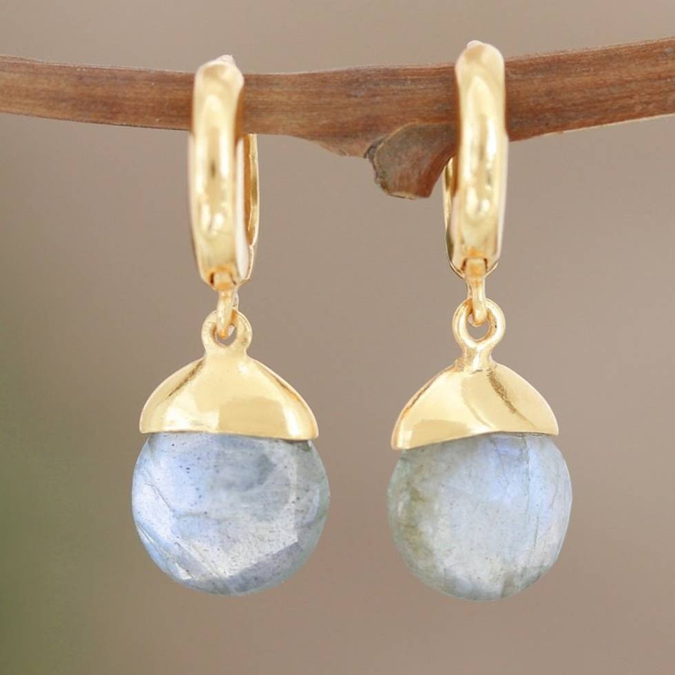 Artisan Crafted Gold-Plated Labradorite Dangle Earrings 'Feeling Free' Item ID: 2671624137