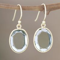 Artisan Crafted Gold-Plated Prasiolite Dangle Earrings 'Great Unknown' Item ID: 2669924603