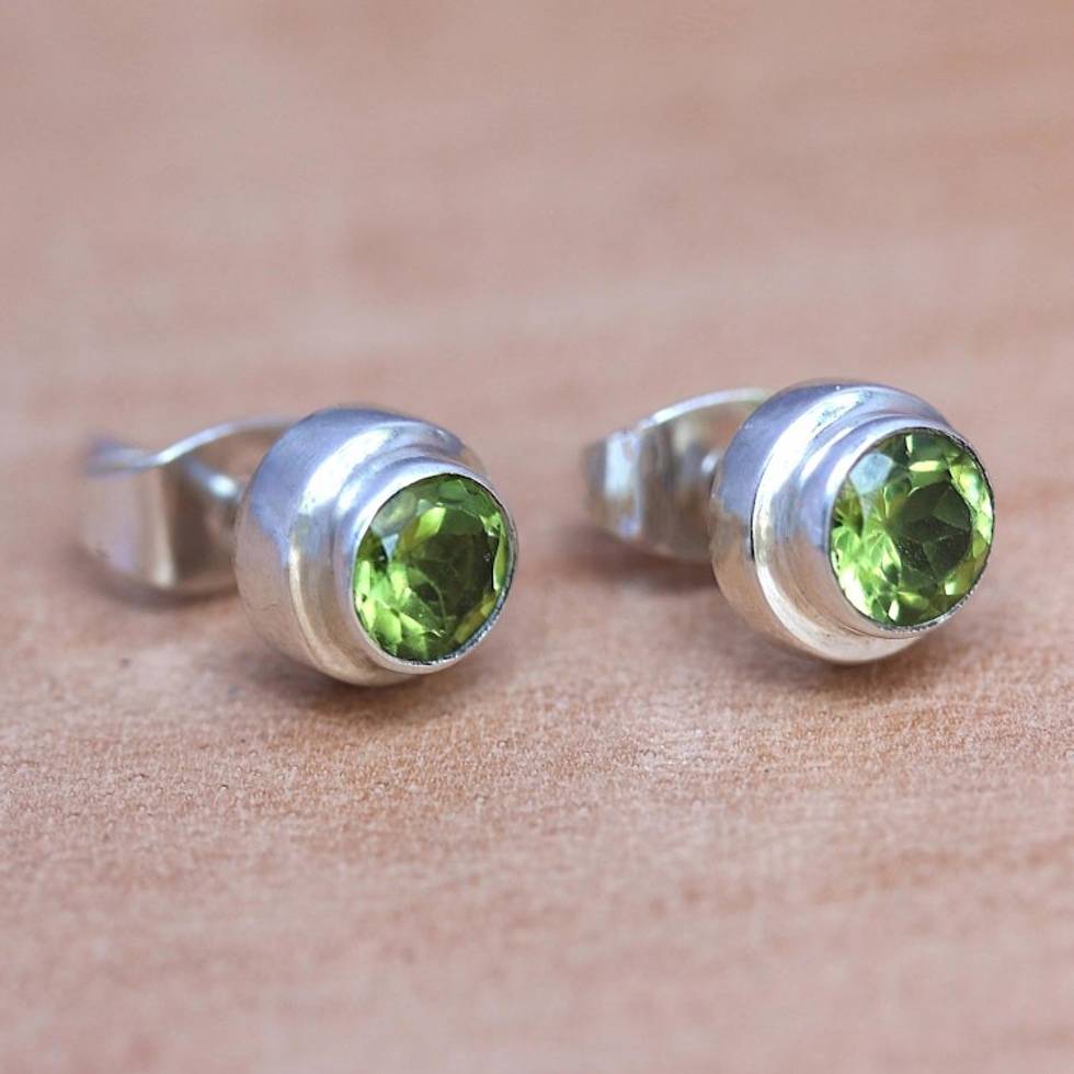 Artisan Crafted Green Peridot Stud Earrings in 925 Silver 'Green Simplicity' Item ID: 2669922403