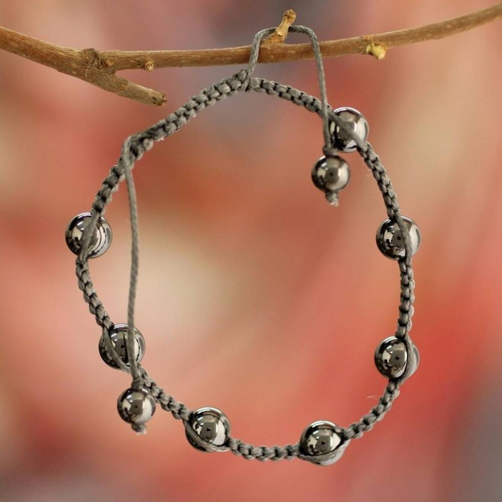 Artisan Crafted Hematite Indian Shambhala-style Bracelet 'Blissful Relationships' Item ID: 2671794857