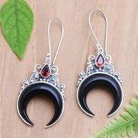 Artisan Crafted Horn Earrings with Garnets 'Gianyar Crescents' Item ID: 2671748288