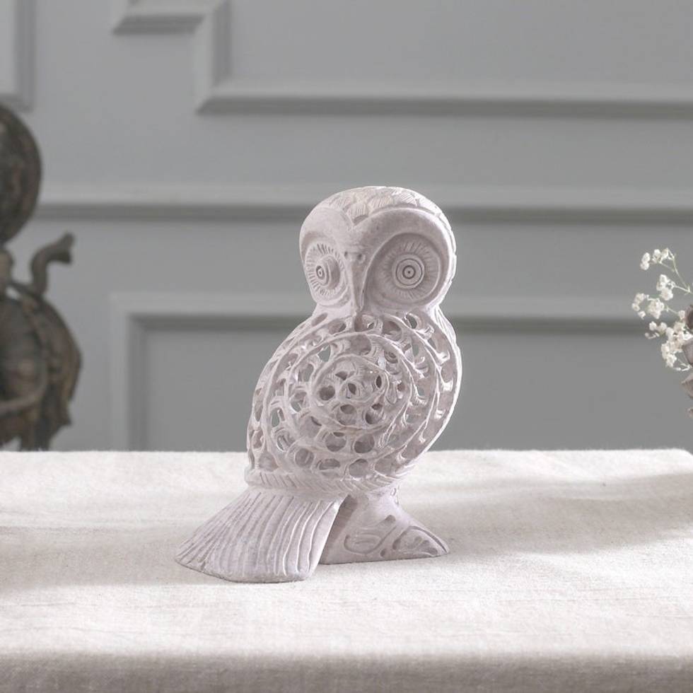 Artisan Crafted Indian Soapstone Jali Sculpture 'Mother Owl' Item ID: 2671794172