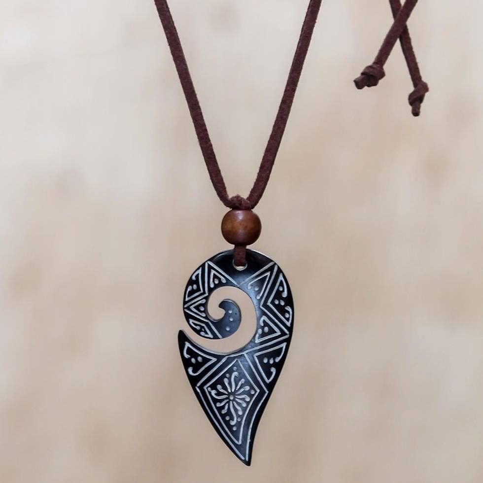 Artisan Crafted Indonesian Cow Bone Necklace 'Lucky Hook' Item ID: 2671698474