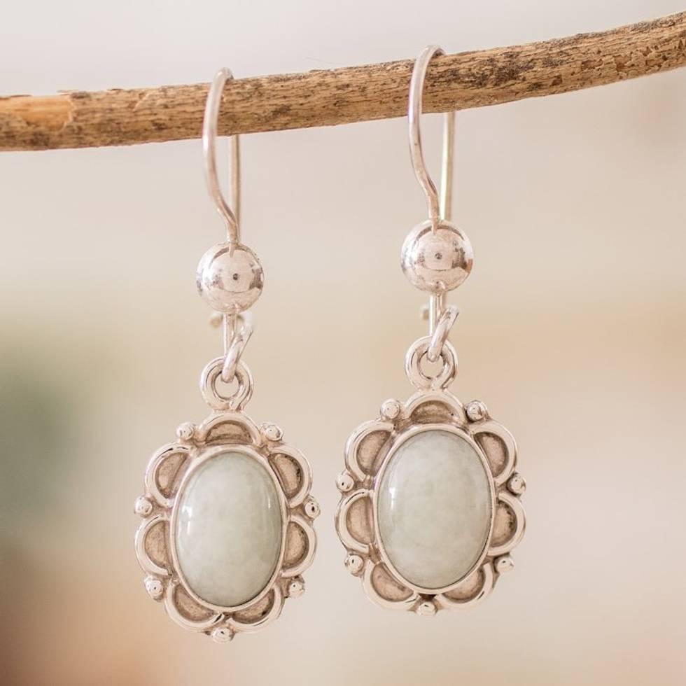 Artisan Crafted Jade and Sterling Silver Earrings 'Apple Princess of the Forest' Item ID: 2669923664