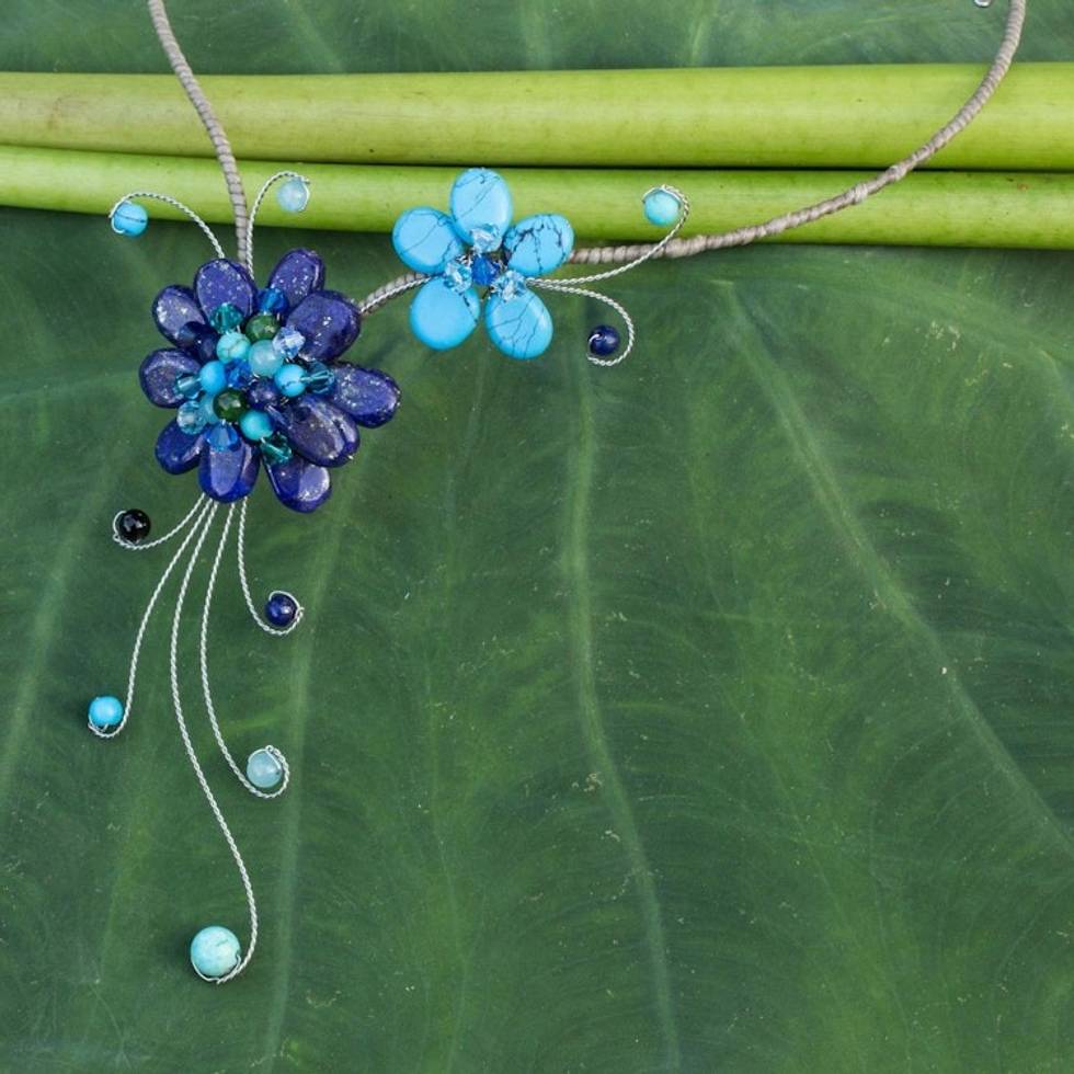 Artisan Crafted Lapis Lazuli Flower Necklace 'Gorgeous Blossom' Item ID: 2669927648