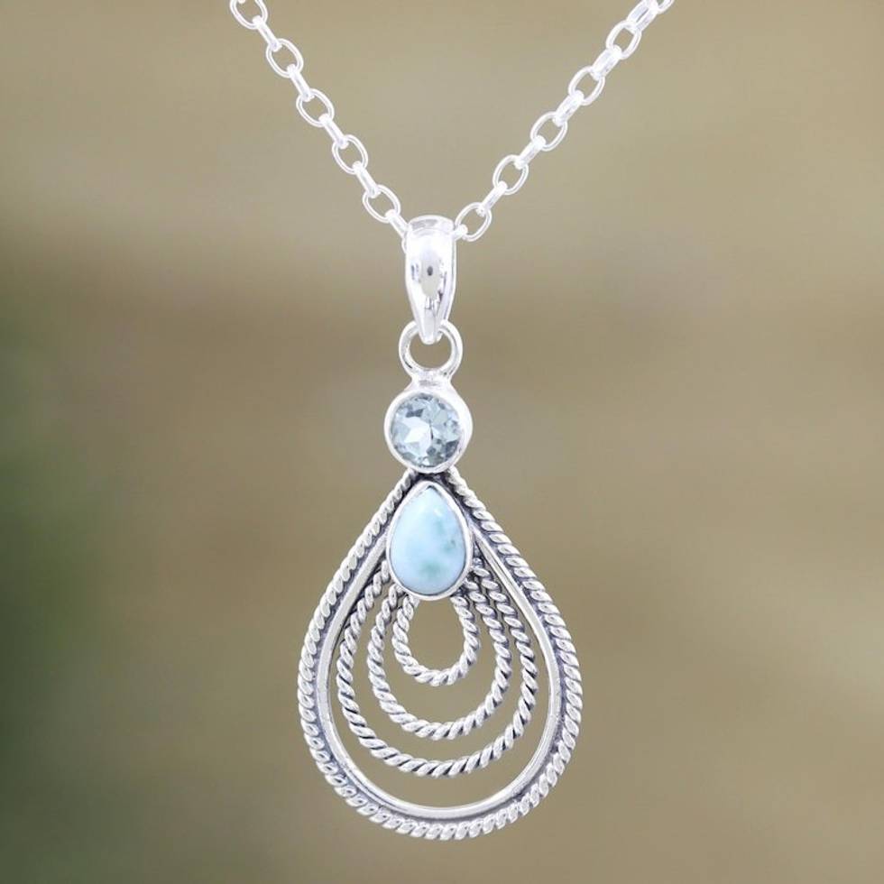 Artisan Crafted Larimar and Blue Topaz Pendant Necklace 'Radiate in Blue' Item ID: 2671789147